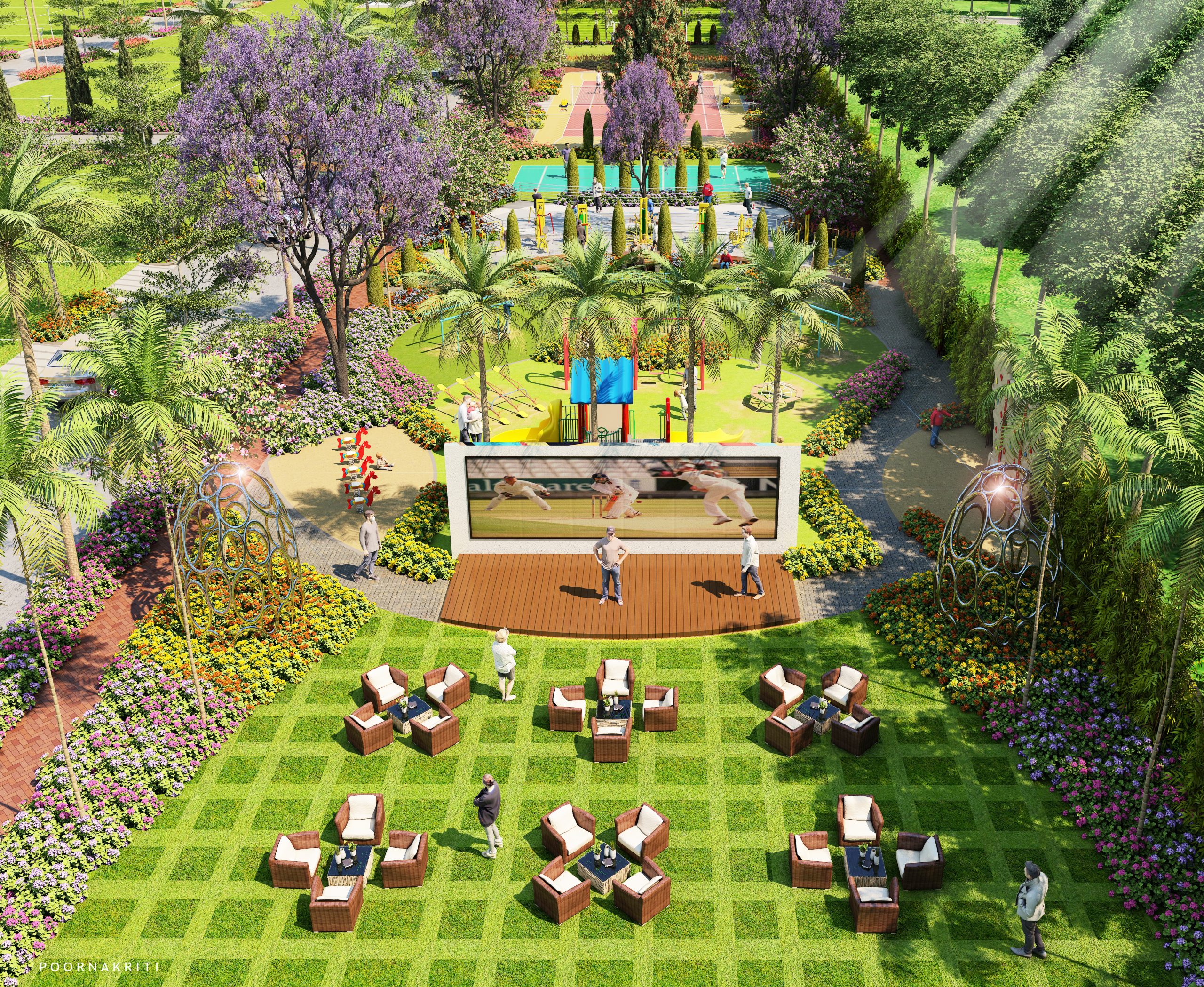 Vast open spaces and greenery within the gated community, ensuring a peaceful environment for residents.